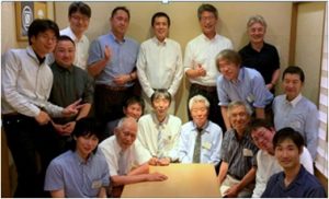 (前列向かって左から)、伊藤和真(H17)、伊藤博之(S41)、中尾隆史(S49)、脇本辰郎教授、坂根正弘(S38)、守本佳郎(S39)、原嘉聡(H17)、濱田克洋(H17)、
