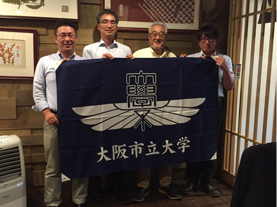 最後には大学より借用の大学旗を初めて広げての記念撮影となりました。今後はもっとメンバーを増やして輪を広げて行きたいとおもっていますので台湾に赴任されている方、在住されている方、留学から戻られた方が、お知り合いにいらっしゃいましたら、学部問わずご紹介ください。