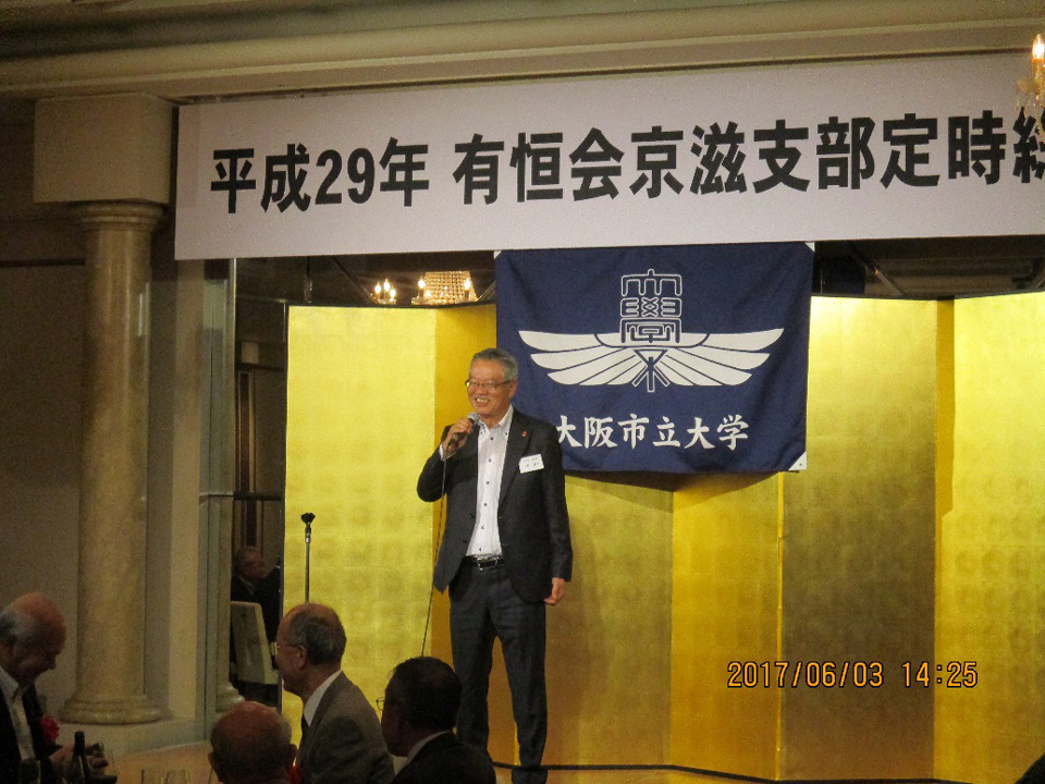 平成29年有恒会京滋支部総会が、平成29年6月3日、京都センチュリーホテルにて開催されました。梅雨入り前でしたが、爽やかなお昼時に57名の出席のもと、盛大に行われました。