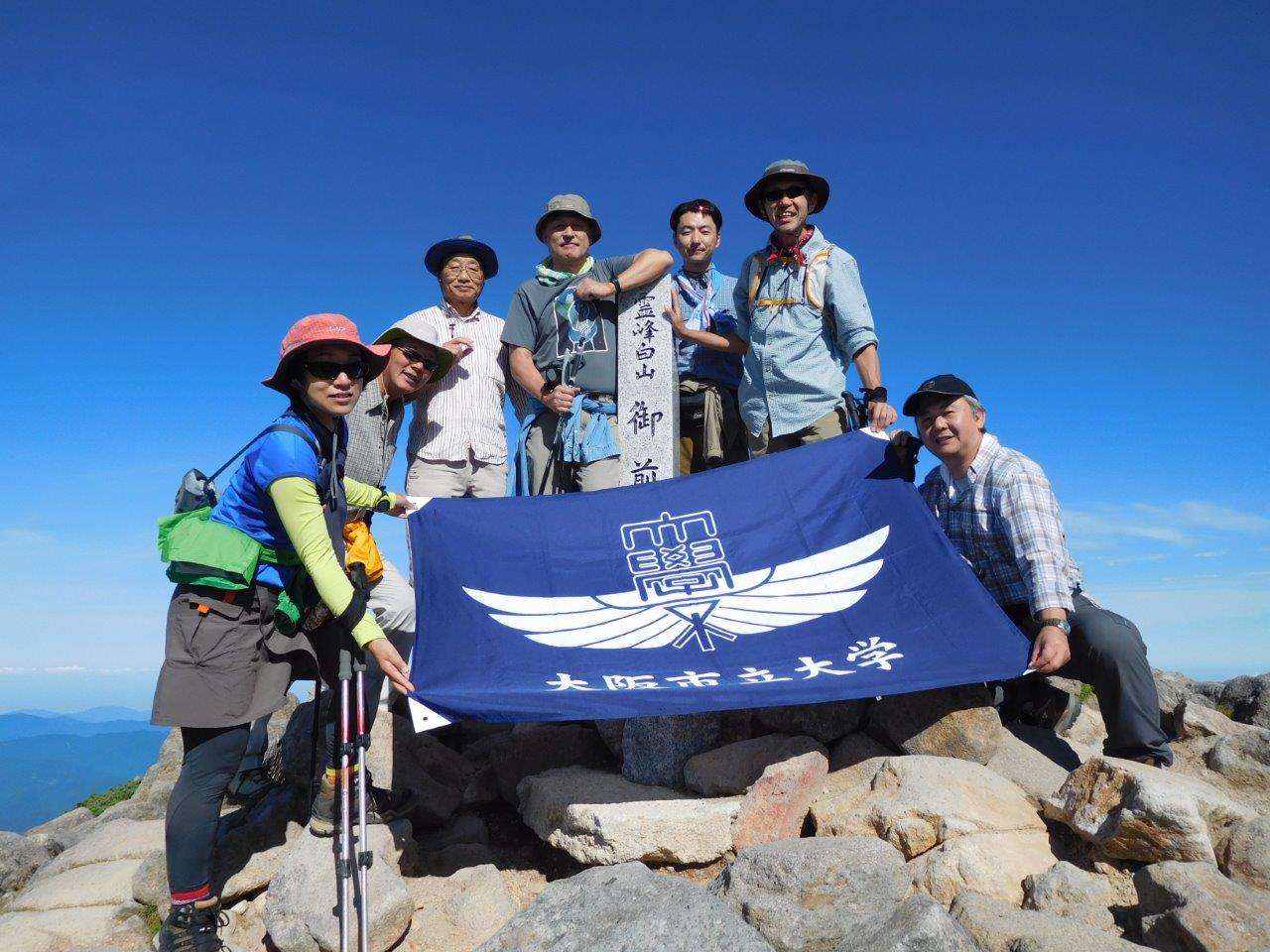 北陸支部ハイキング登山部が発足して三回目の活動になる今回は、日本三名山の一つで越前生まれの修行僧泰澄が開山して1300年を迎えた霊峰白山(標高2702m)に一泊二日の登山。参加者は池田部長を始め7名。