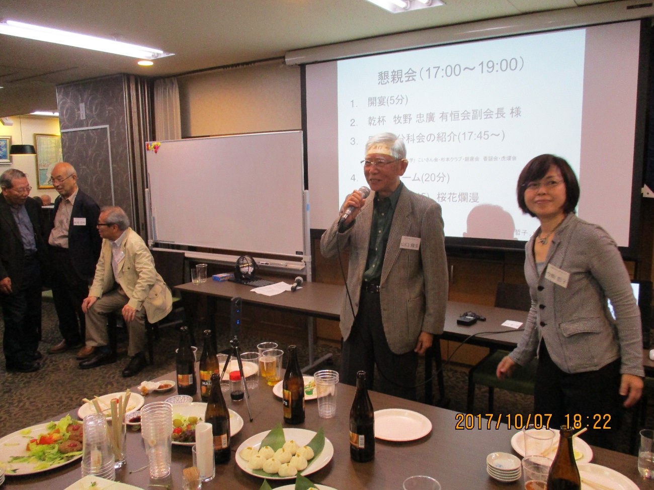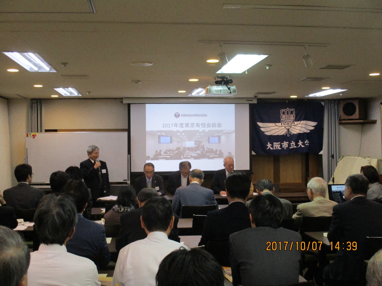 平成29年度の東京有恒会総会は、荒川学長、尾山有恒会会長、坂根コマツ相談役、牧野有恒会副会長のご出席を頂き、総勢で60名余の参加となりました。比較的若い層と、女性の参加者が少なかったことは、これからも運営上の反省点として残りました。