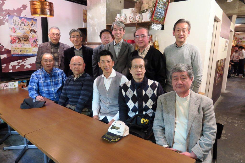 阪神タイガース矢野燿大コーチ、有馬映也(昭40商)、安藤進(昭53文)、御田明彦(昭53文)、田中利治(昭43商)、富永雅敏(昭51法)、柳原恒久(昭36法)、山本明男(昭47商)、吉田稔(昭50商)、若尾壽幸(昭58法)樋上晴雄(昭45法)