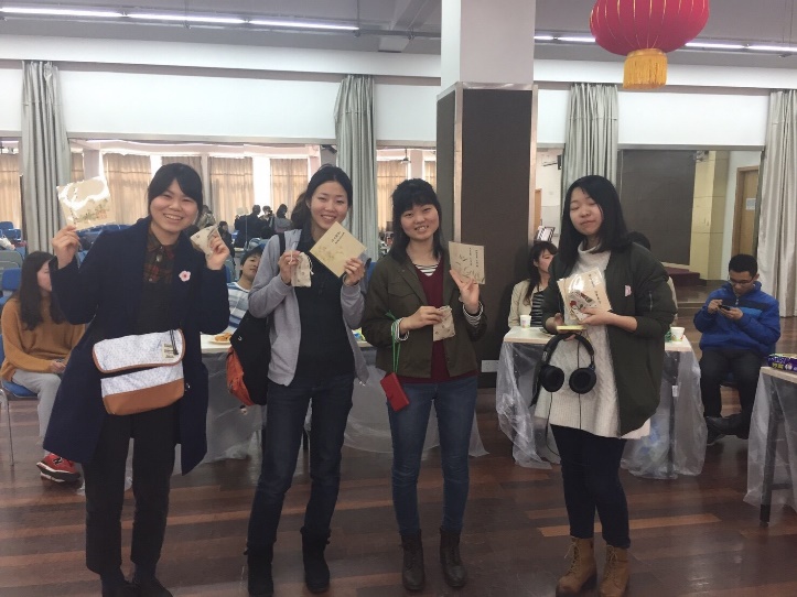 上海の学生主体のウェルカムパーティ、日本の学生主体のフェアウェルパーティでは簡単なゲームや双方のプレゼント交換などを行いました。中国語と日本語という言語の壁はあるものの、英語の活用や現地の日本語学習者の通訳の助けもあって会話も弾み、時間いっぱいまで交流を楽しみました。