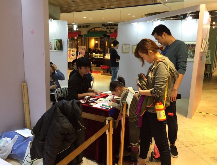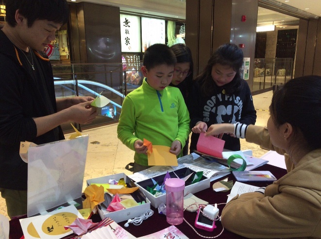 同時に、折り紙のワークショップも開催しており、折り紙を欲しがる子供も多く、そちらも子供に人気でした。子供たちにはその場で描いた絵や折り鶴などプレゼントしたりしました。