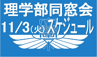 15:00 理学部同窓会総会 場所:田中記念会3階 同窓会交流室