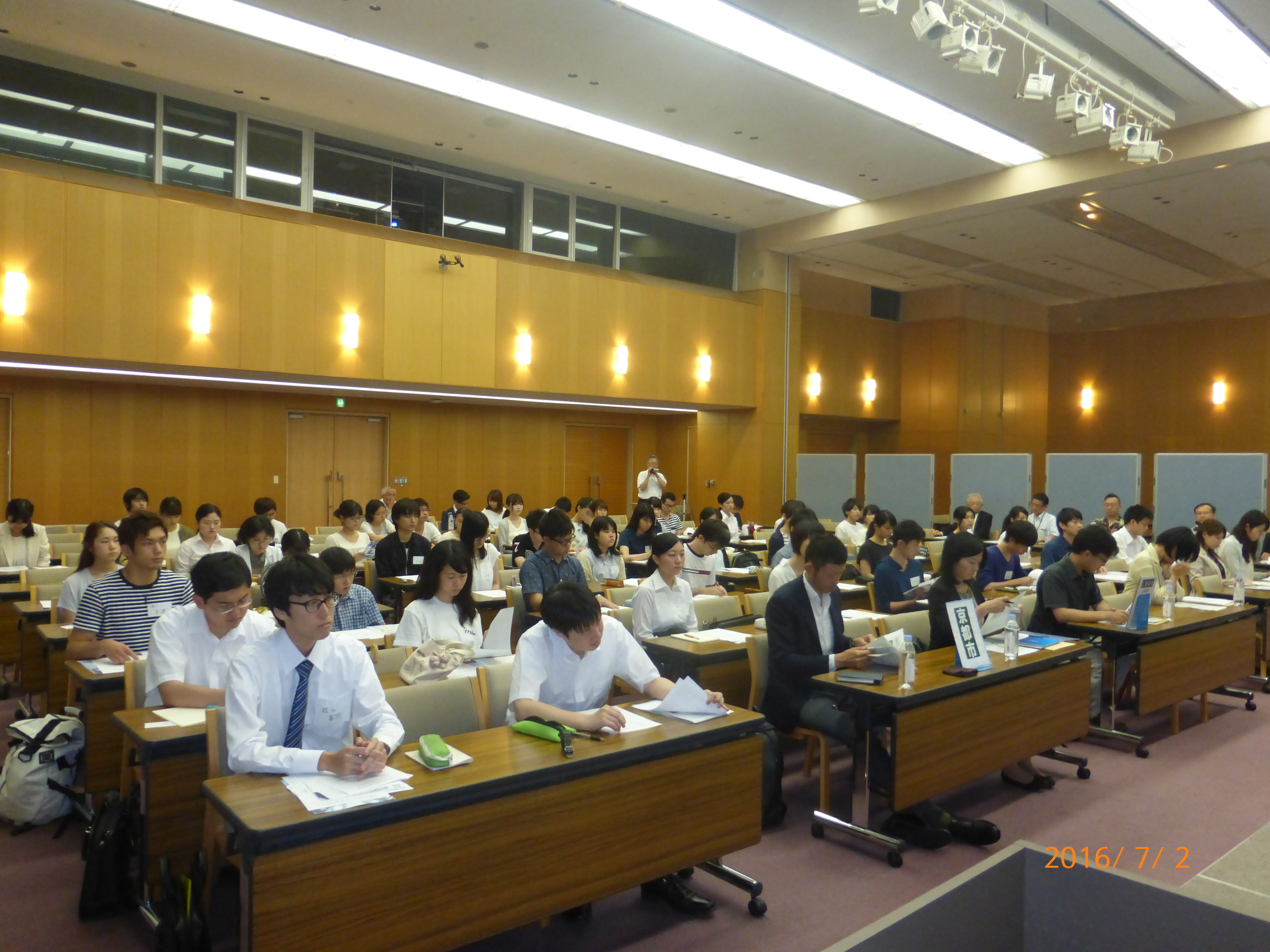 交流会冒頭、井上副学長、富澤学生担当部長から激励のご挨拶があり、パネルディスカッションでは「志望動機」「求められる人材・心構え」「仕事内容・職場イメージ(良かったこと、大変なこと)」「勤務実態(人事異動、待遇、残業)」「今後の勉強(コツ、面接対策)」「是非伝えておきたいこと(やっておくべきこと、覚悟)」など様々なことが話し合われ志望者に伝えられました。