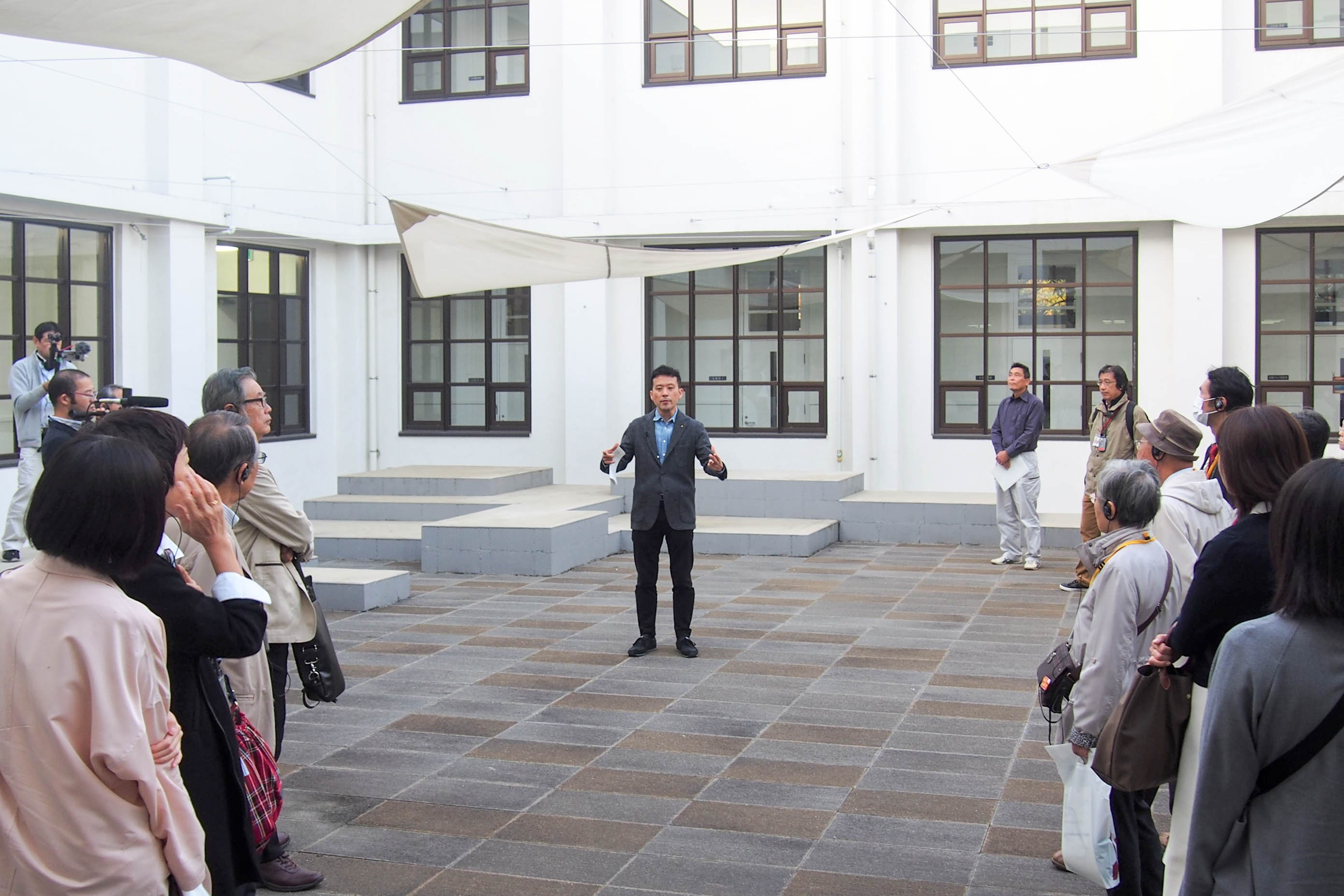 生活科学研究科の小池志保子准教授は造形の楽しみ方を小さな部分から説明し、「裏側のデザインも良い。外構も含めて、それをどう生かしていくか」と語った。工学研究科の嘉名光市准教授は対照的に、大大阪時代の都市計画から俯瞰し、同様に未来に受け継ぐことの重要性を述べた。