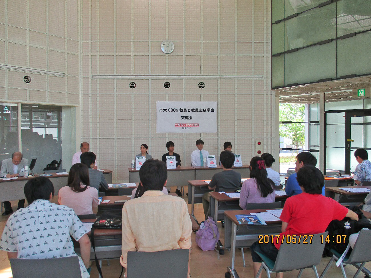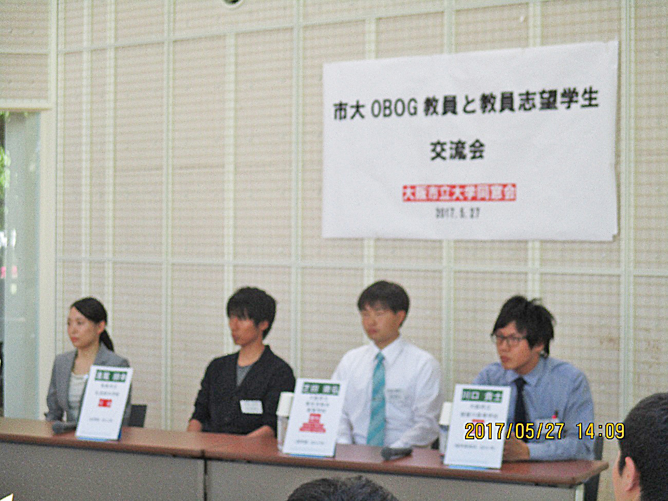 平成29年5月27日(土)午後2時から、4人のOBOG教員をパネラーに、OBOG教員と教員志望学生16名との交流会が高原記念館にて開催された。