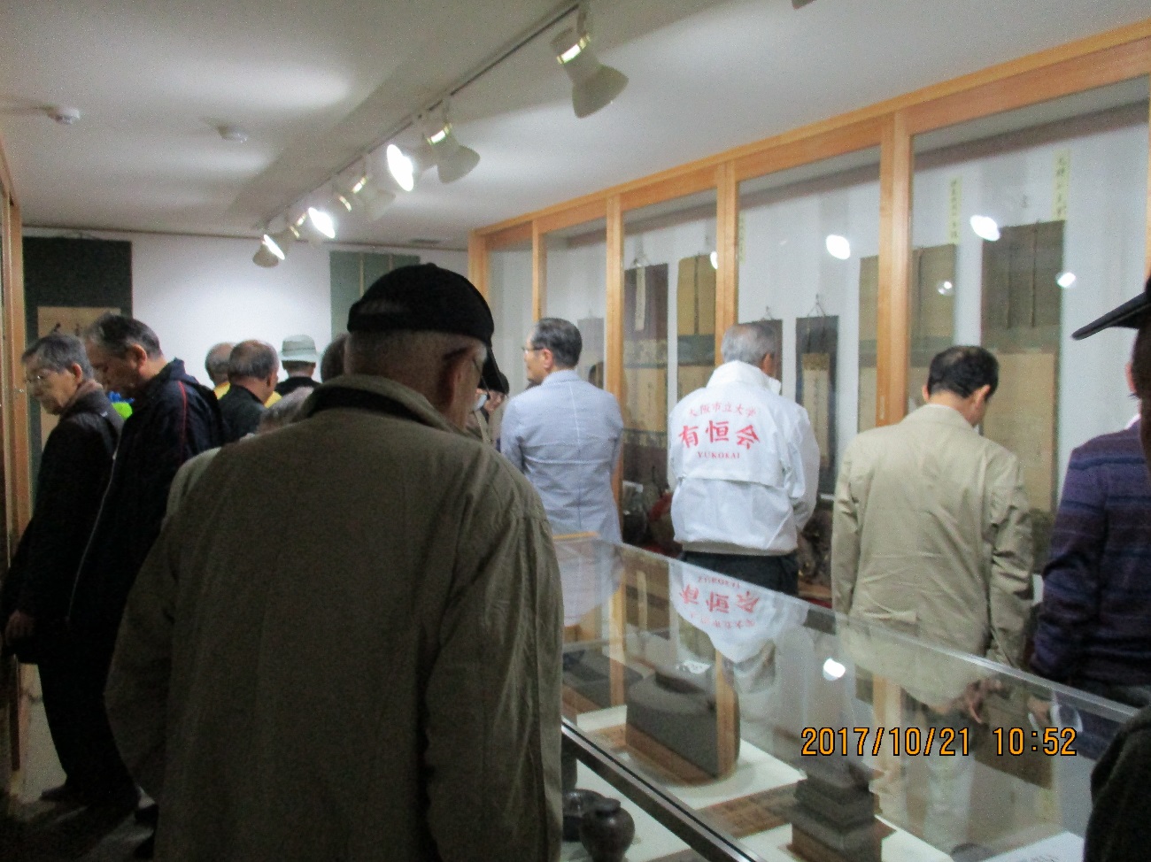 台風21号の影響で、終日雨天にもかかわらず、34名が参加された。今回は、全学同窓会、有恒会、大阪南支部の共催。当日の案内は、企画段階・下見に参加していただいた南大阪支部会員で元堺市役所職員の出原康雄(経昭42)氏。