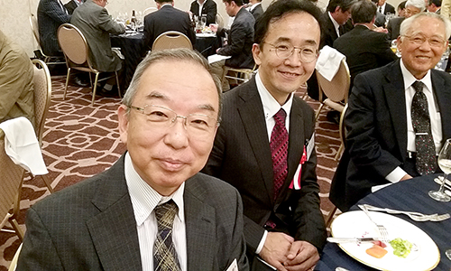 有恒会は今回特別参加の奈良支部3名を含む29名、如水会は22名、凌霜会も22名、合計73名が各テーブルで親睦を深め、最後は各校校歌合唱の後、次回主催校の凌霜会支部長岡田登史彦様から、「今回は神戸大もいつもより人数が多かったが、来年はさらに多数の出席を目指す」と心強い決意表明で幕を閉じました。