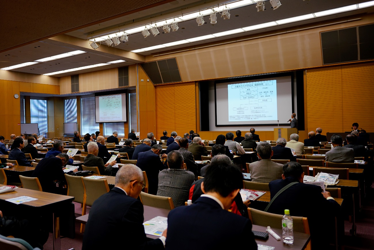 午後1時からは再び会場を学情10階大会議室に戻し、「母校が輝きを増すために」と題して、荒川哲男学長による講演会が行われた。講演では映画「LAST SAMURAI」を引き合いに、自分よりも他人を優先する他利の考え方を紹介した。そして、本学が他利・忠義・尊敬というサムライ精神をもった卒業生を多く輩出してきたと指摘した。最後に、今後大学統合が進むにあたり、優秀な人材を輩出し続けるためにはある程度の初期投資が必要なことを強調し、大学に自主財源の創出を求める行政とは一線を画した立場を鮮明にした。