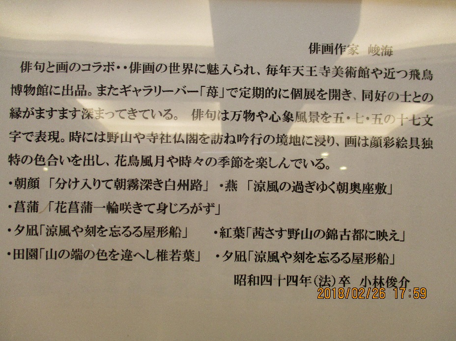 大阪駅前第2ビル6階文化交流センター談話室で小林俊介氏(S44法卒)制作の俳画7点を展示しています。ぜひご覧ください。