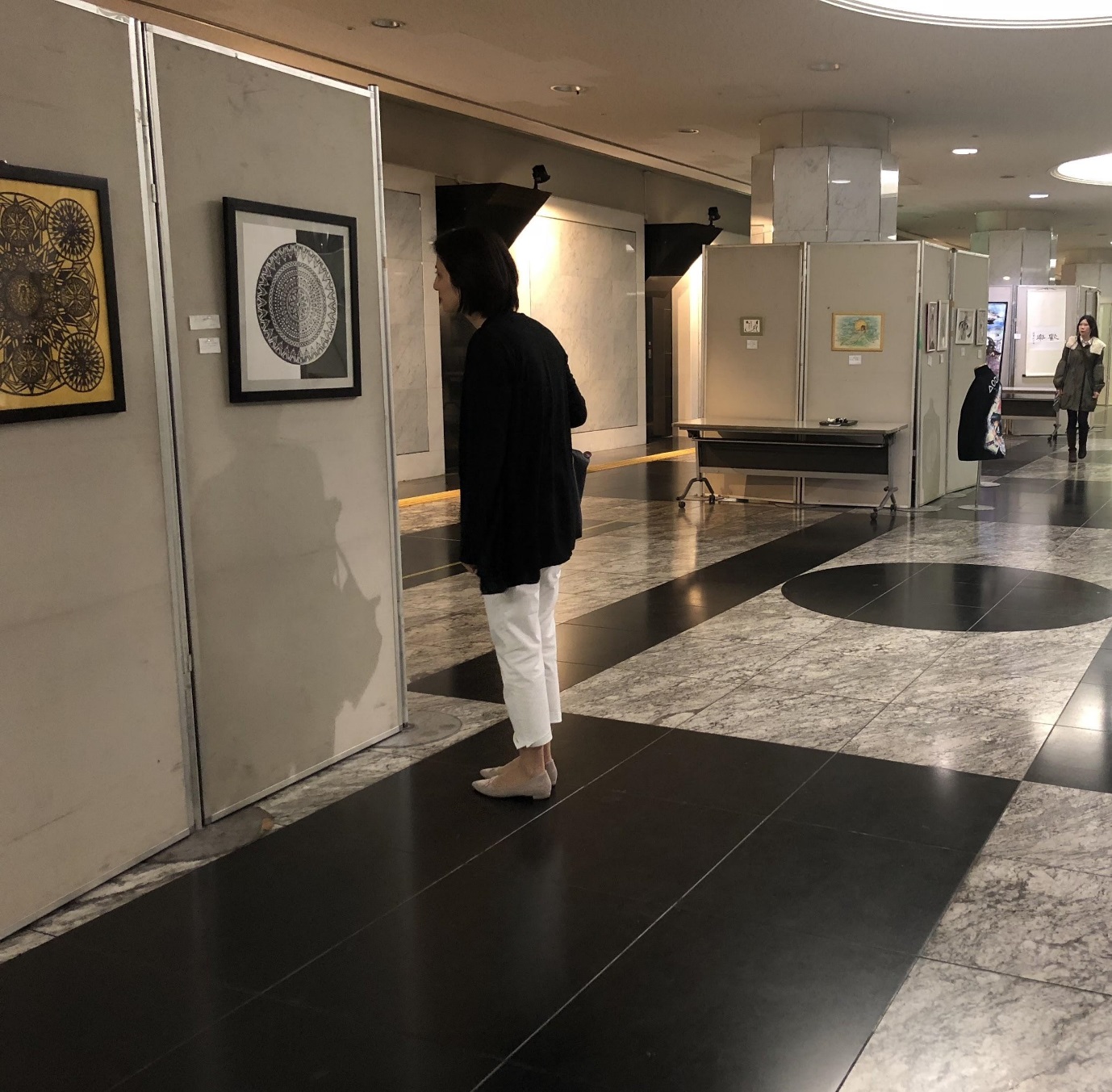 実際に作品展示が行われているみちまちスクエアには、絵画だけではなく書道やTシャツなども展示されていた。文化の違いが窺える作品もあ数多くあった。