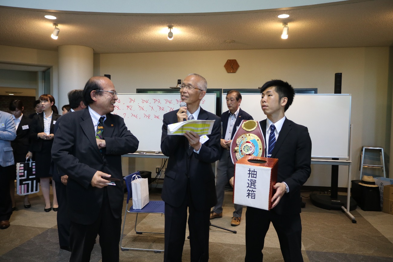 抽選会の模様 ボクサーチャンピオン坂本選手が抽選会プレゼンターをつとめる。