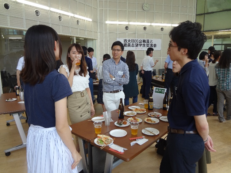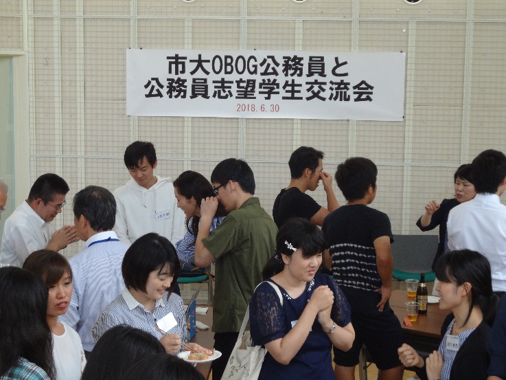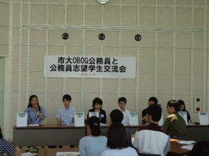 公務員志望の市大学生が、近畿圏自治体公務員や国家公務員として勤務する市大OBOGの意見・助言などを聞き、「職業としての公務員」について理解を深める機会とすることを目的に、2013年から開催されてきたこの交流会も、今年7回目となりました。