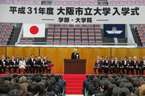 2019年4月5日(金)、大阪市立中央体育館(朝潮橋)にて「2019年度 学部・大学院入学式」が挙行された。今年度の入学者は、学部1,539名、3年次編入学生10名、大学院前期博士課程(医学研究科、都市経営研究科は修士課程)506名、大学院後期博士課程(医学研究科、創造都市研究科は博士課程)133名、法科大学院は20名。