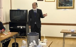 開高健 没後30年にあたる12月9日(月)開高健文学碑前にて悠々忌が執り行われ、水仙の花が手向けられた。この催しは関西悠々会と全学同窓会の主催で、大阪市立大学 法文学部(卒業時)出身である芥川賞作家・開高健の偉大な足跡に敬意を表し、関連行事と共に毎年行われている。献花後は、場所を友愛センター北田辺へ移し、恒例の「開高さんを偲ぶ会-トリスバーと開高健-」が催された。バーテンダー植田氏(法昭44卒)が作るトリスウイスキーの水割りを片手に、開高さんの思い出話は尽きることなく、ほろ酔いの心地よい空間の中、杯を重ねる市大関係者、天王寺高校同窓生他、たくさんの開高ファンで賑わいを見せた。没後30年、生誕90年(2020年)と “開高健イヤー”となる今年から来年にかけて、様々なイベントが各地で開催、また予定されている。開高の残したものは、令和になった時代も色あせることなく、今またその存在感をあらわに、注目を集めている。本学、学術情報センター3階の「開高健 著作コーナー」では、絶版となった貴重な作品の閲覧もできる。ぜひ足を運んでみてはいかがだろうか。