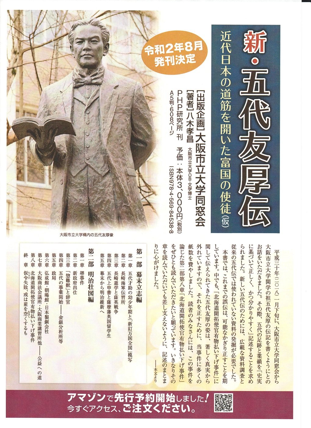 五代友厚 記念事業委員会 の事業の一環として、出版準備を進めて参りました、
