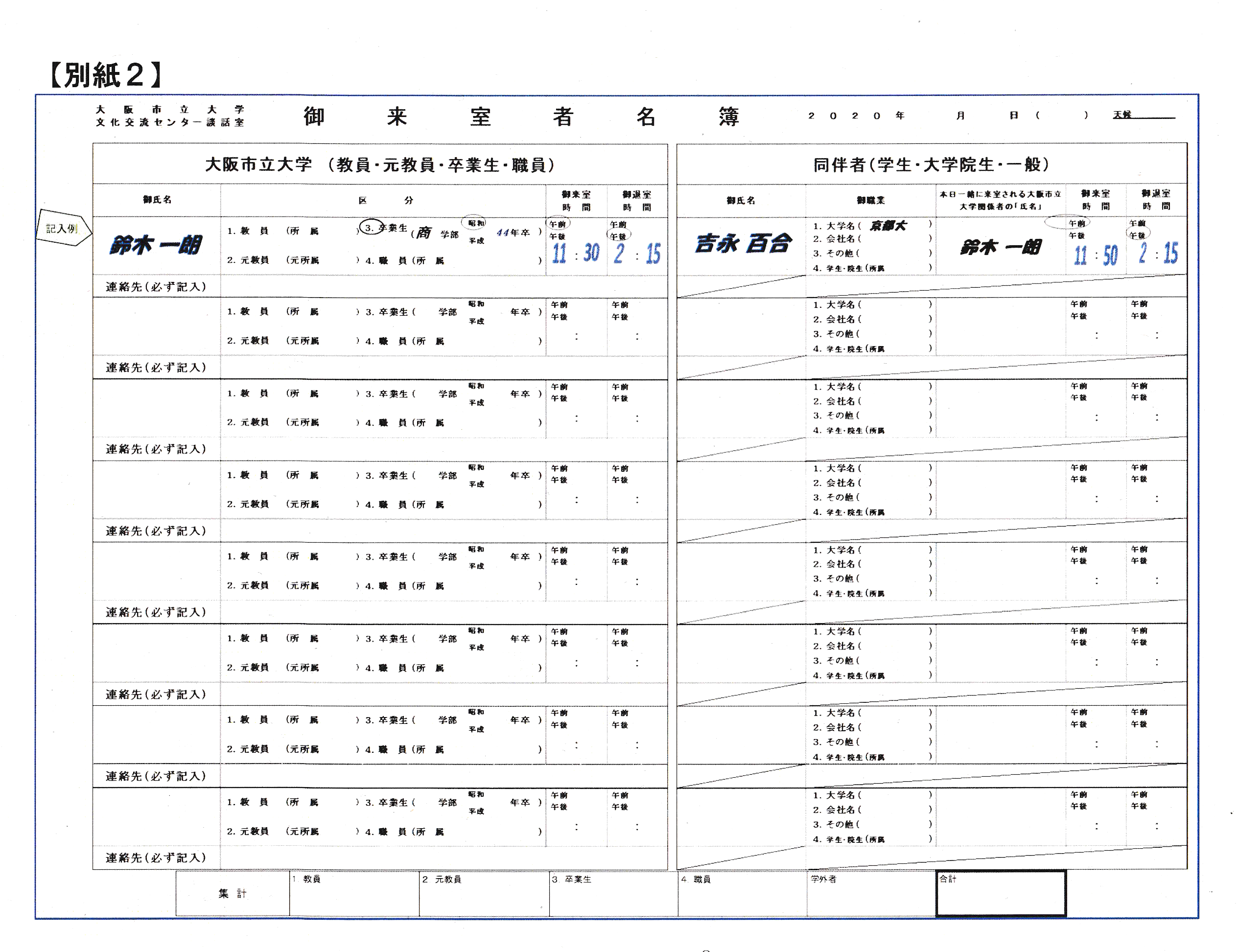 ② 同伴者の連絡先は記載を求めないが、利用者が連絡先を把握するものとする。