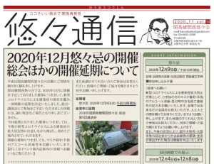 開高健関西悠々会では、2020年12月に開催を予定しておりました催事につきまして、新型コロナウイルスによる感染症の現実を鑑み、一部開催の延期を決定いたしました。