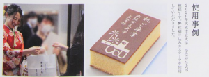 長﨑堂のカタログに本学文学部とコラボしたカステラが紹介されました(^^) 写真は昨年度の卒業式で文学部の学生に配付されたカステラです☆☆