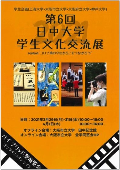 1年のはじまりに、さくらが咲き、万物が躍動する春がやってきました。 この希望と喜びに満ちた季節に、大阪市立大学、大阪府立大学、神戸大学、そして上海大学の皆様がオンラインの形で、第六回中日大学学生文化交流展の開幕を迎えました。