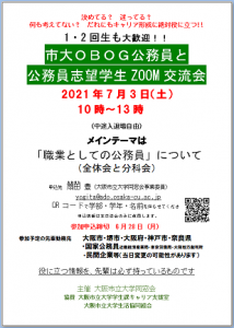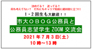 「公務員勤務の市大OBOGと公務員を目指す学生のZOOM交流会」のご案内です。