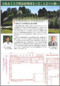 同送物(支部会員の皆様へのPRよろしく御願いします。) ・植物園会員募集 ・夢基金チラシ