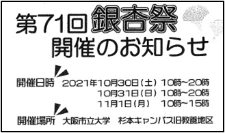 第74回銀杏祭が10/30(土)~11/01(月)、コロナ禍対策の入場制限下で開催されました。
