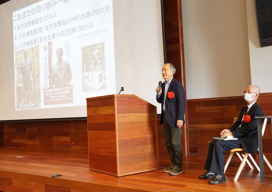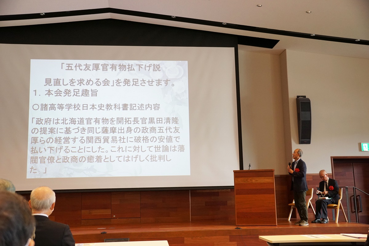 1つ目は、全学同窓会五代友厚記念事業委員会の児玉委員長からの報告。