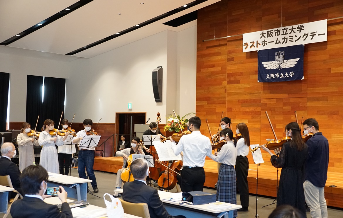 また会の途中では、交響楽団の演奏や応援団のエールが行われた。