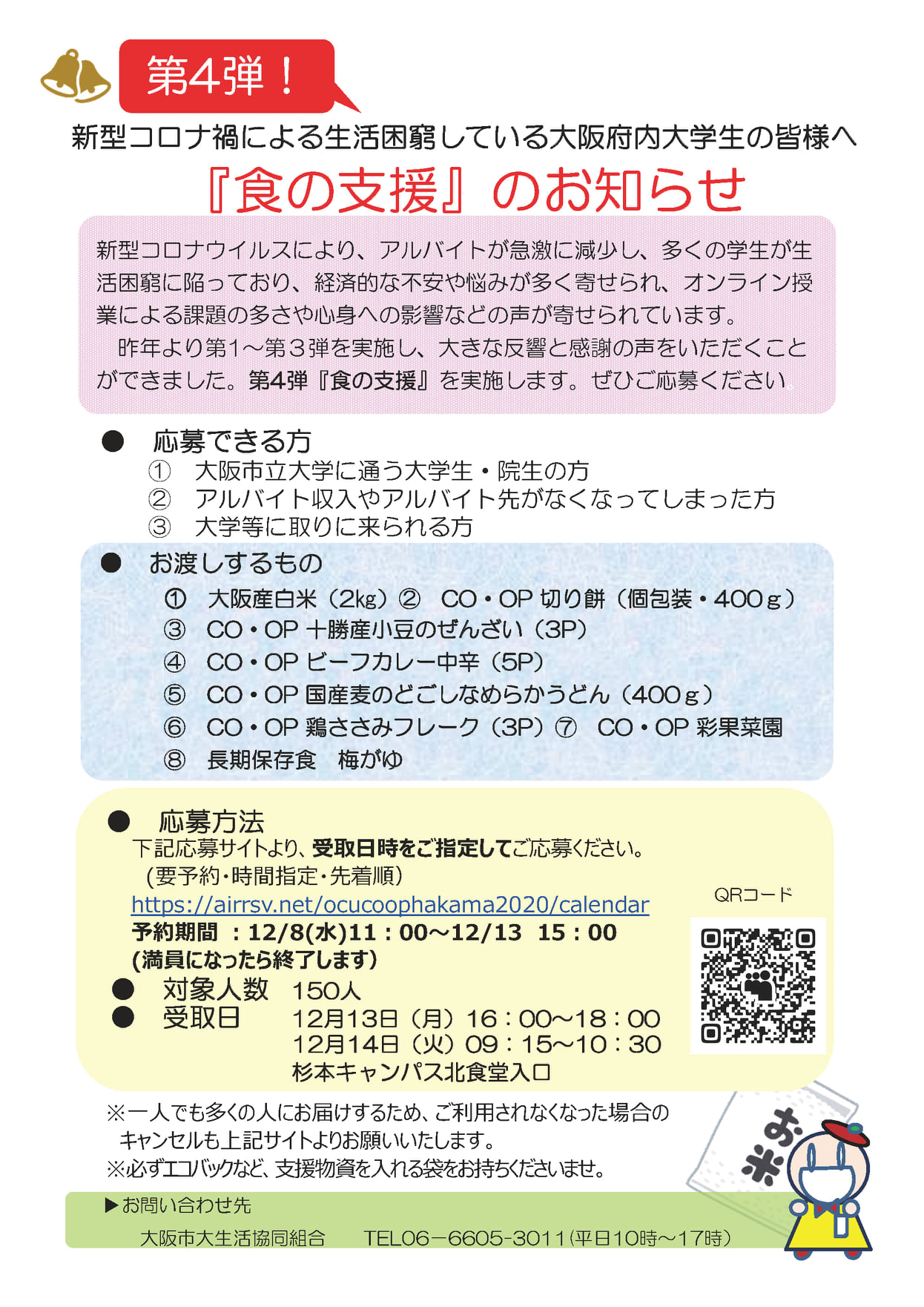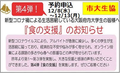 > [告知/生協]『食の支援』第4弾/応募できる方:市大の大学生・院生の方