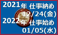 > 2021年末の仕事納め(12/24(金))と、2022年仕事始め(01/05(水)) のお知らせ