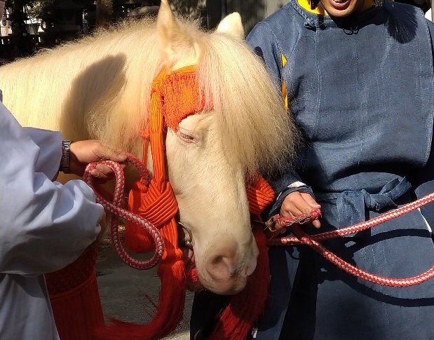 この神事を手伝っています。 皆さん、添付の白馬写真で、邪をお祓いください。