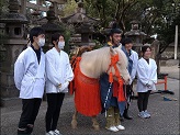 白い衣装を着ている若者たちは、現役の「大阪市立大学馬術部」の学生で、毎年、1月7日の