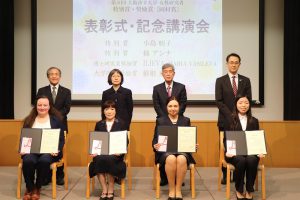 特別賞受賞者の小島明子准教授は、これまでの長年の肥満やがんなどの生活習慣病予防効果のある食品成分の評価システムの確立等について研究成果や研究室での活動風景を発表されました。また、もう1名の特別賞受賞者の梯アンナ講師は、発がん機序解明に多方向からアプローチした数々の研究成果や女性活躍推進の取り組みについて語りました。
