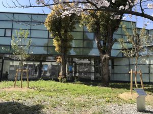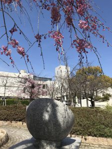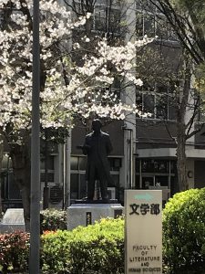 戦没学友の碑 が見上げている1号館時計台 2022/04/01