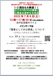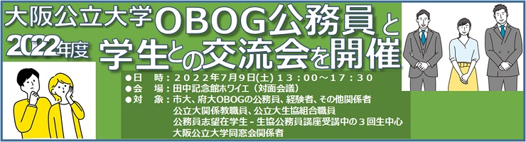- 2022.06.30 [予告] 07/09(土) 2022年度 大阪公立大学 『”OBOG公務員”・学生交流会』 を開催