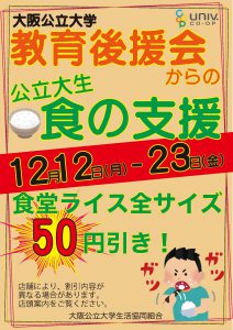 12/12(月)~/23(金) 公立大教育後援会からの大学生食の支援を実施/大阪公立大学生活協同組合