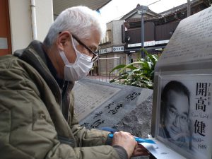 - 2023.01.23 [開高] 開高健文学碑(近鉄北田辺駅駅前)の開高健肖像写真パネル新装R4.11/05(土)