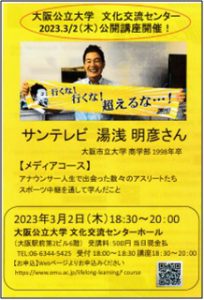 [公開講座] 3/2(木) 文化交流センター サンテレビ湯浅明彦さん(市大商H10卒) 野球中継でお馴染み