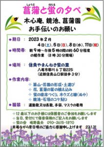 木心庵、鏡池、菖蒲園 お手伝いのお願い (出典:蛍の会) -