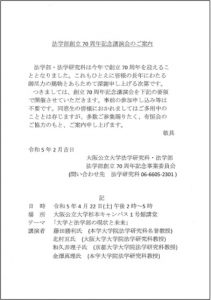 - 2023.02.07 [法学部] 法学部創立70周年記念講演会のご案内 4/22(土)