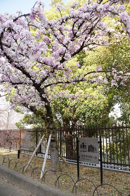 造幣局協力の「五代友厚と桜まつり」は、今年も3月29日午後、汗ばむような晴天に恵まれての開催で40名が参加した。温暖化の影響か、すでに造幣局構内や大川畔のソメイヨシノ桜は満開となり、絶好のお花見日和であった。