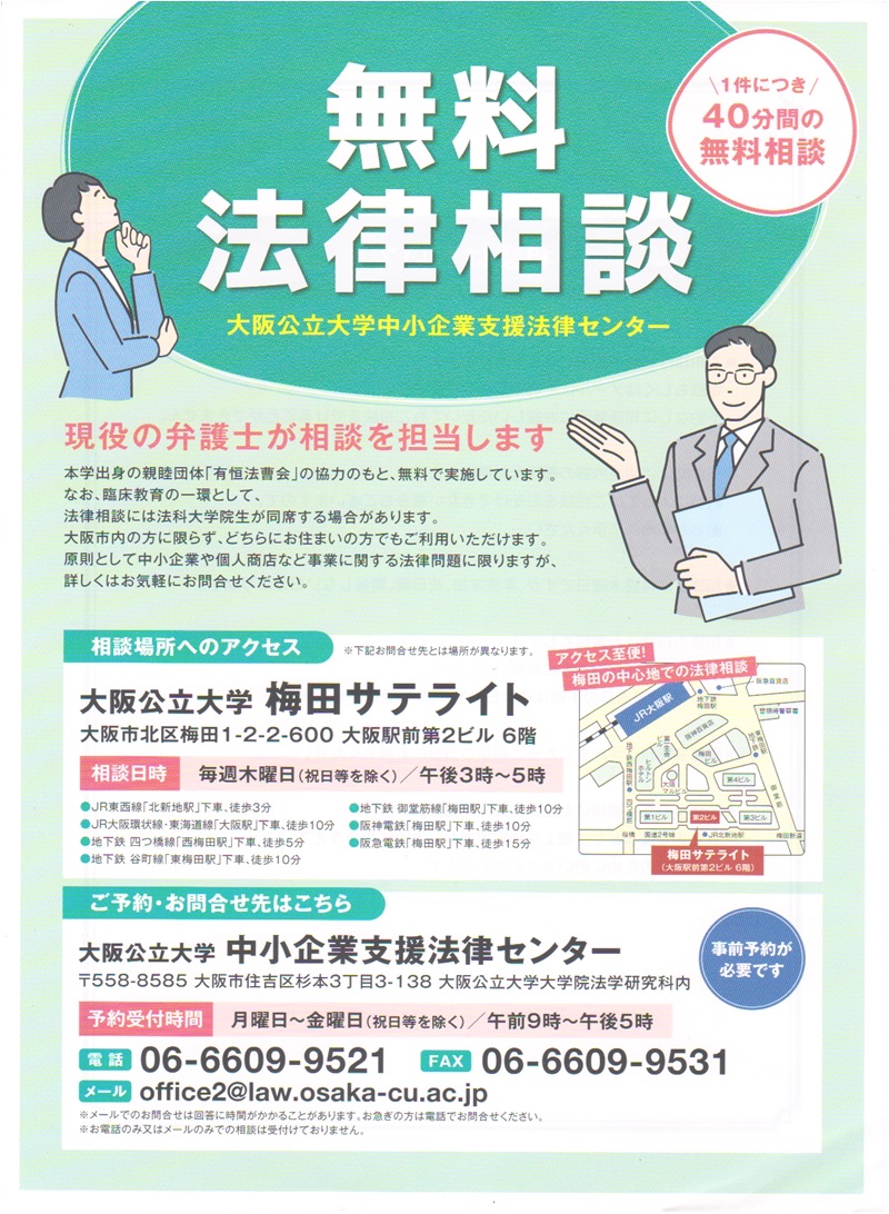 - 2023.06.05 公[大学院/法学研究科] 中小企業支援法律センター/大阪公立大学無料法律相談所