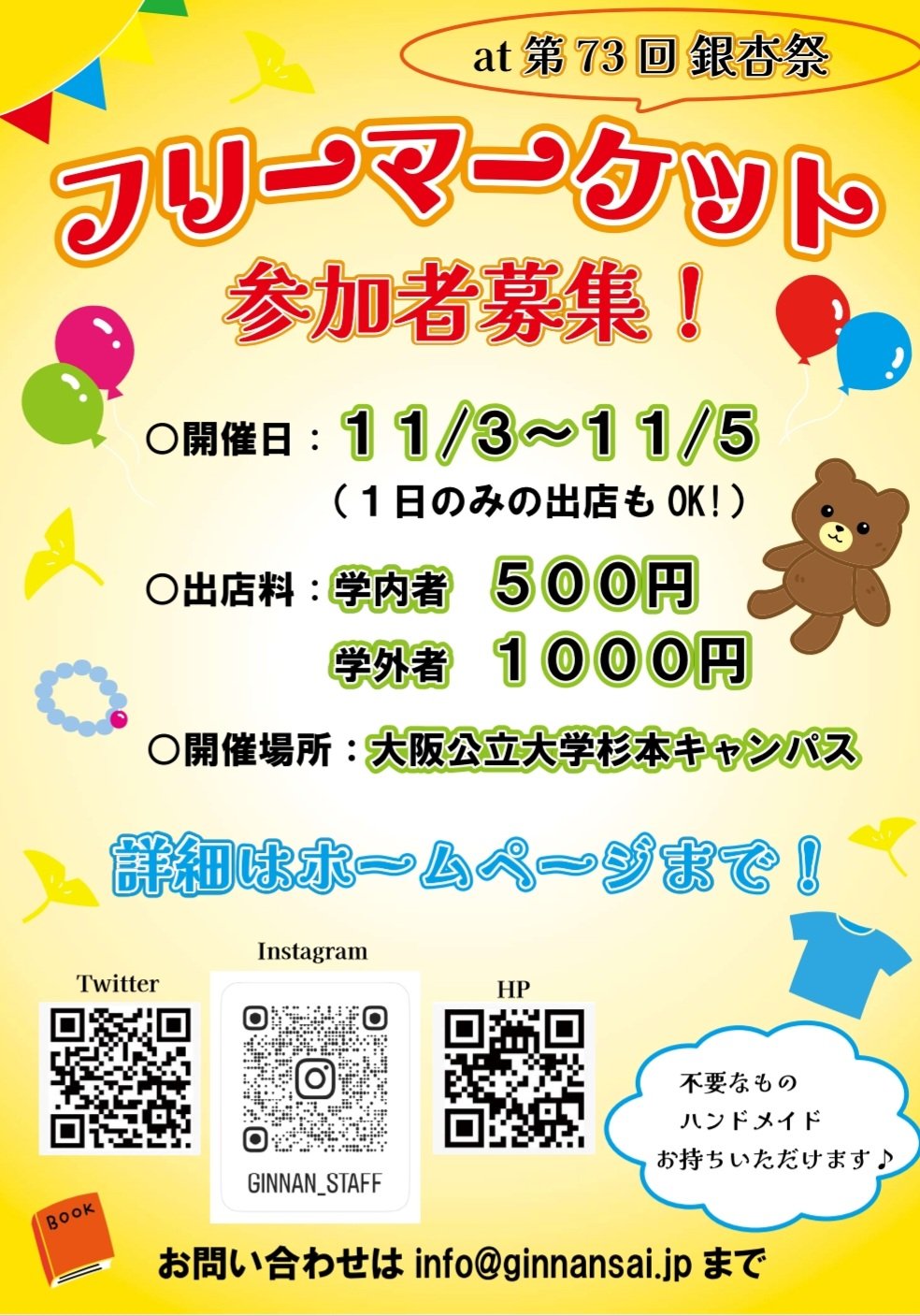 第73回 銀杏祭 フリーマーケット 参加者募集 のお知らせ