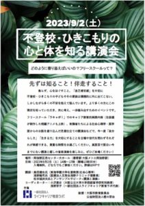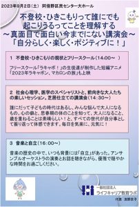 この度、不登校・ひきこもりを考える講演会を行なうことになりました。