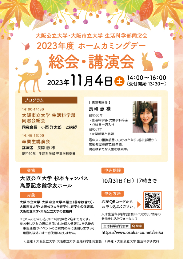| 主 催 | 大阪公立・市立大学 生活科学部同窓会 |
