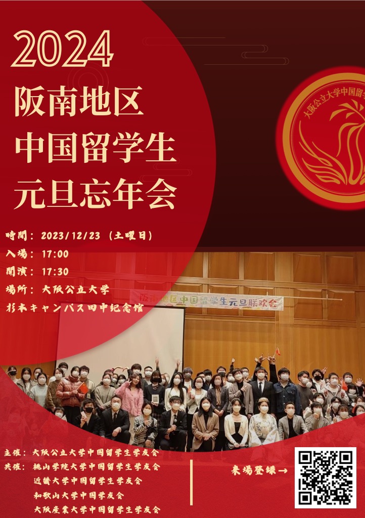 今年度も私ども大阪公立大学中国留学生学友会では、阪南地区中国留学生元旦忘年会を行います。