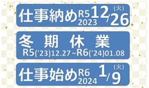 冬期休業:2023年12月27日(水)~2024年01月08日(月)